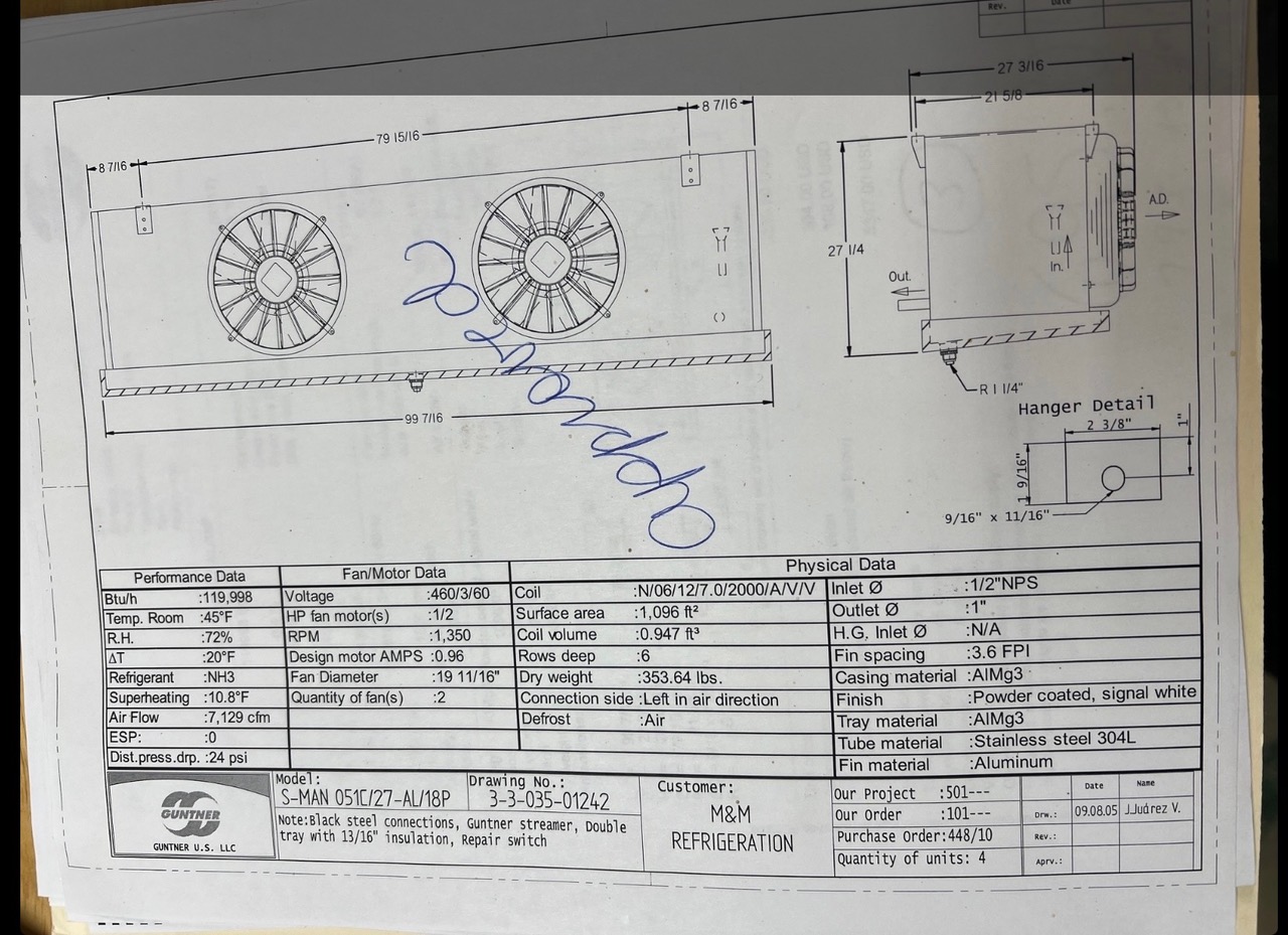 (3) Cold Storage Guntner evaporators- 2 fan- good condition