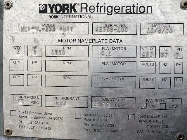 York 200 ton Ammonia Evap condenser